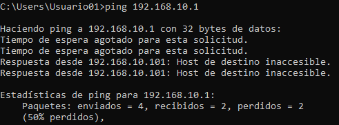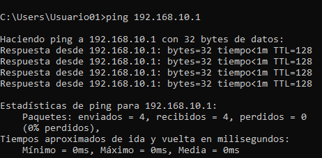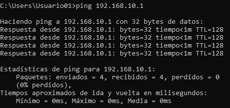 Primero, comprobaremos que tenemos conexión con el servidor DC01 desde el cliente Windows 10 con los dos adaptadores funcionando.