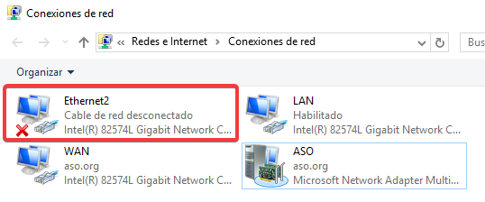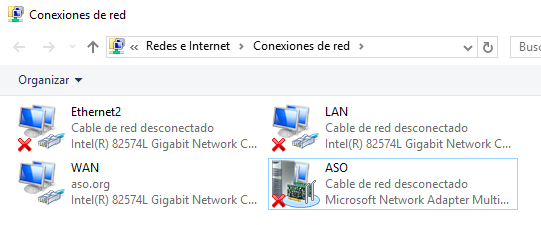 Ahora, desconectaremos los dos adaptadores LAN y observamos que el adaptador ASO tampoco funciona.