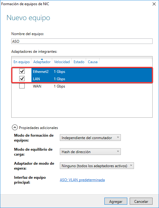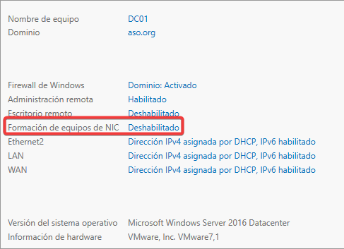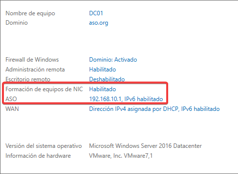 Observamos que ahora solo tenemos dos adaptadores y la Formación de equipos NIC está habilitada.