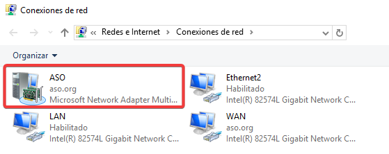 y veremos que aún tenemos conexión debido a que el adaptador ASO sigue funcionando.