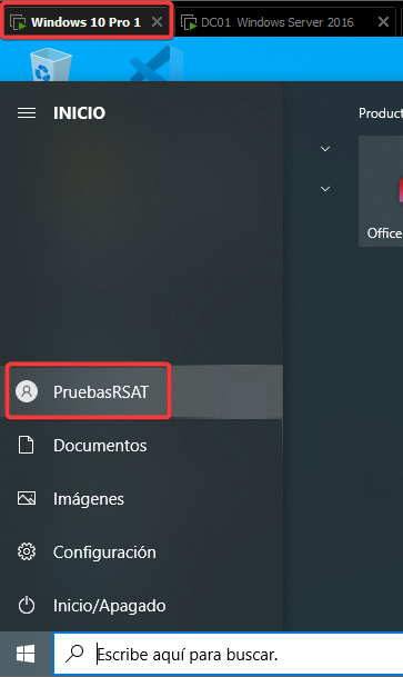 Accederemos sin problema con las credenciales del usuario PruebasRSAT.