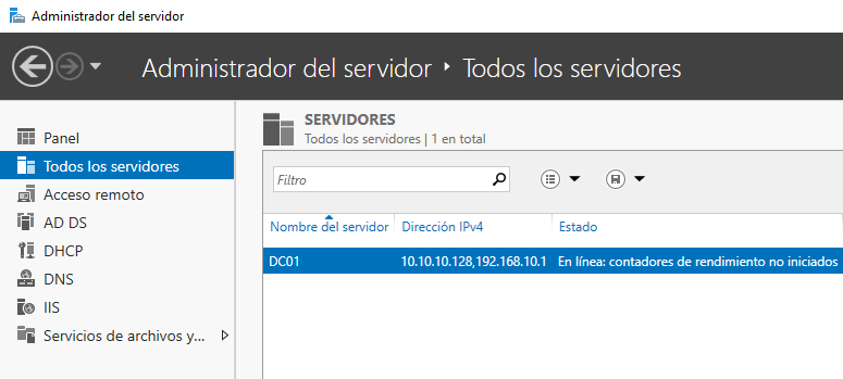 Una vez instalado, reiniciaremos el equipo e iniciaremos el administrador del servidor desde Windows 10.