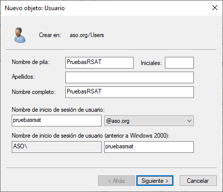 Ahora crearemos un nuevo usuario desde las herramientas RSAT de Windows 10.
