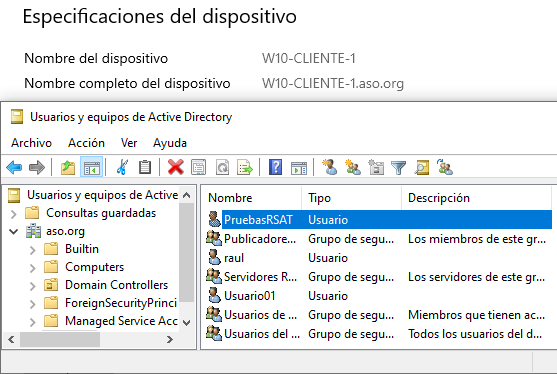 Primero instalaremos las herramientas RSAT en el cliente Windows 10 como hicimos en esta práctica.