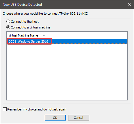 Cuando se haya instalado la característica, conectamos el adaptador a nuestro ordenador, y nos aparecerá esta ventana, dónde seleccionamos que se conecte a la máquina virtual.