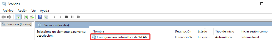 Si no aparecen las redes Wi-Fi puede que el servicio esté parado o detenido.