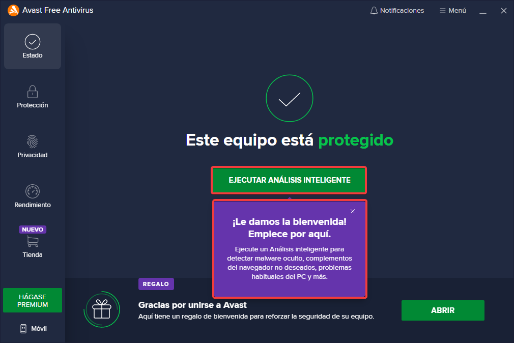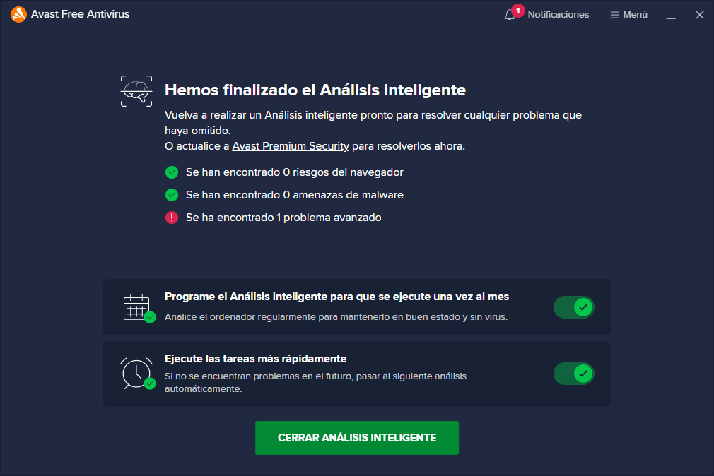 Una vez se haya instalado, nos aconsejará hacer un análisis inteligente.