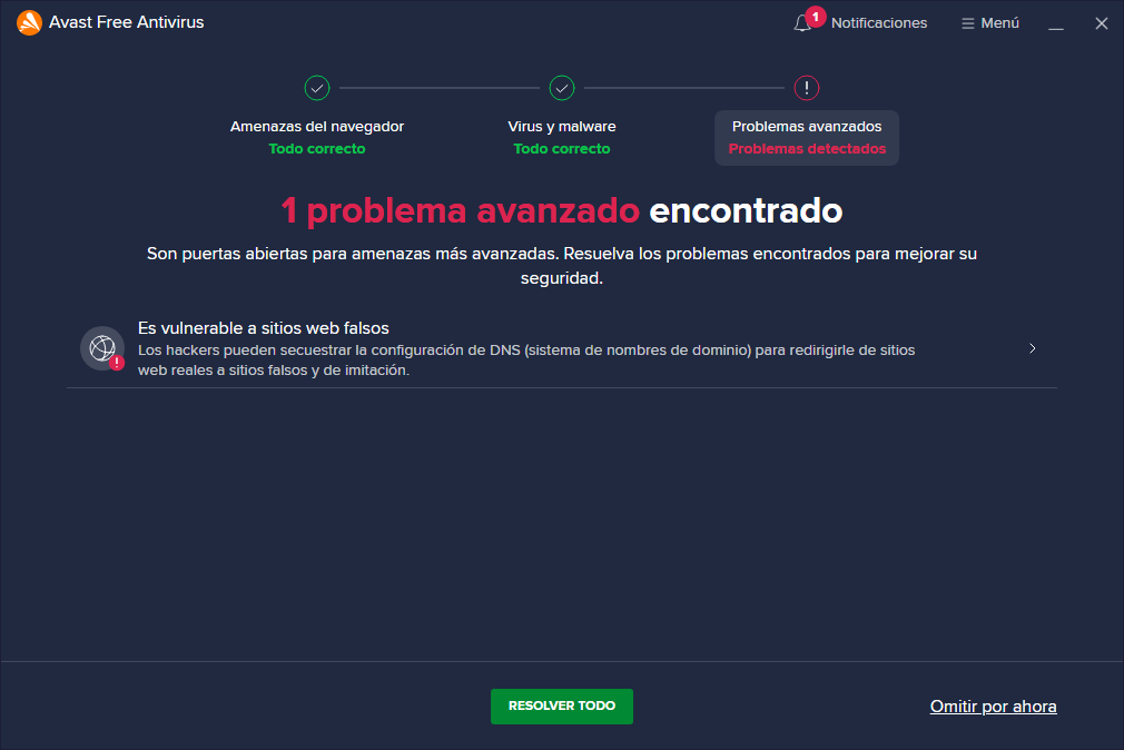 Cuando termine nos advierte que la configuración DNS puede ser manipulada. Pero si intentamos resolver este problema nos pide que paguemos la suscripción, así que por el momento lo omitiremos…