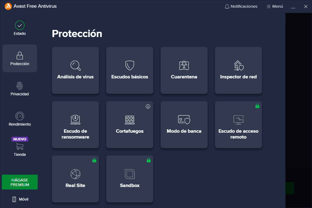 En el menú lateral podemos ver todas las herramientas de protección que podemos usar.
