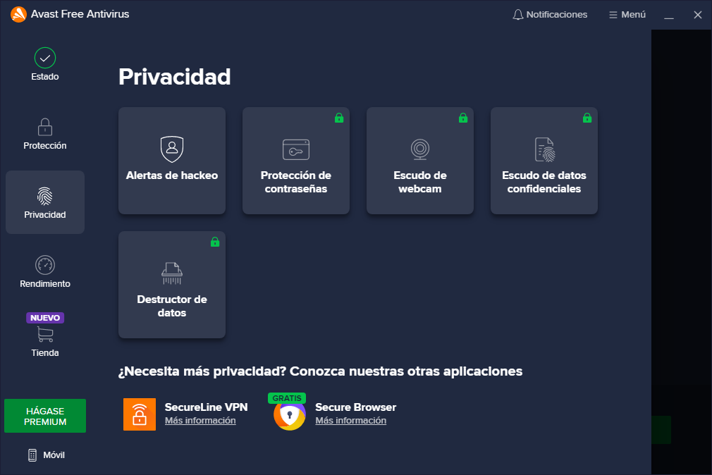 Luego, veremos las herramientas de privacidad, la mayoría de pago.