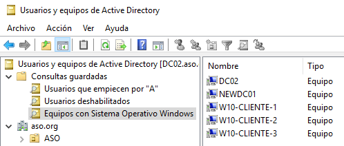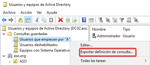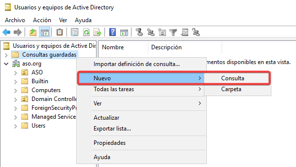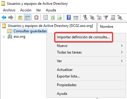 Si salimos y volvemos a entrar a la herramienta de Usuarios y equipos de Active Directory veremos que las consultas han desaparecido así que vamos a importarlas.
