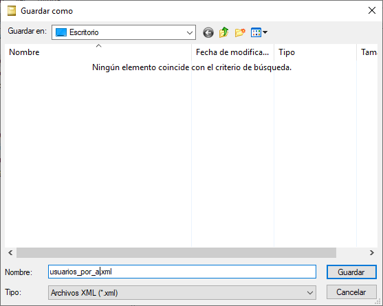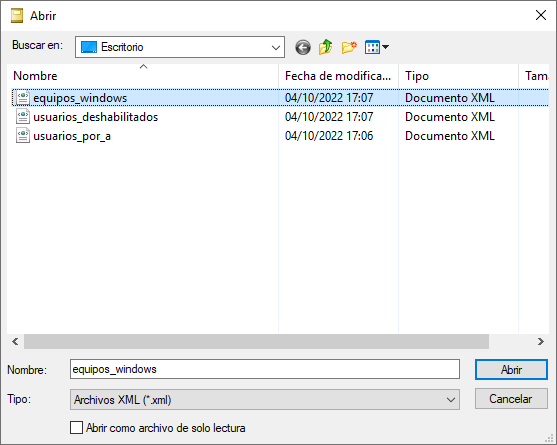 Indicaremos la ubicación y el nombre del archivo en formato .xml.