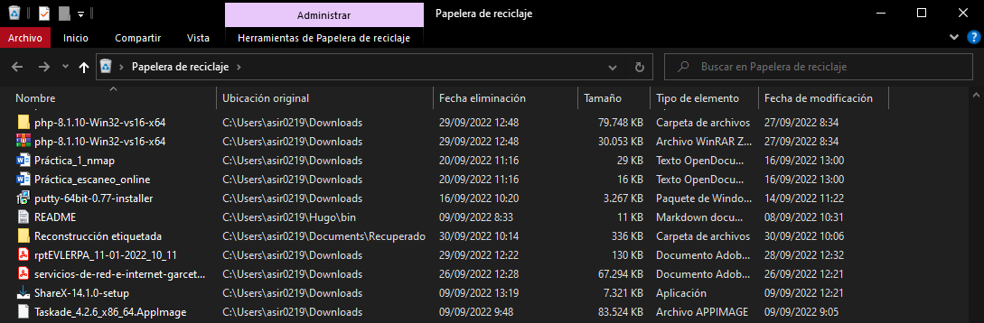 Ya no tendremos nada en la papelera de reciclaje. Además todo lo que hemos borrado es prácticamente imposible de recuperar.