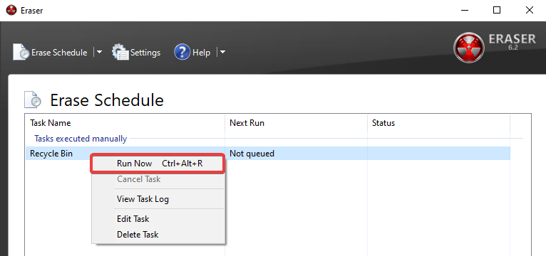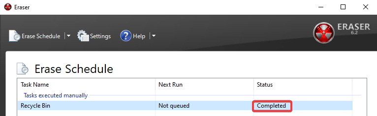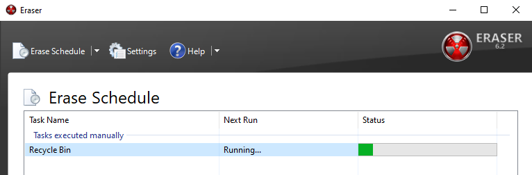 Eraser es un programa perfecto como alternativa a FreeEraser, es muy sencillo de usar y tiene muchas más opciones. Permite crear tareas de borrado seguro y se ejecuta en segundo plano, puede ser totalmente transparente al usuario.