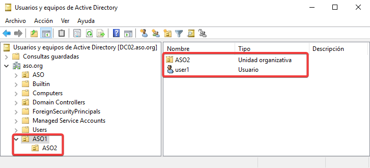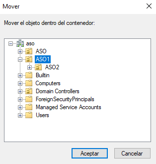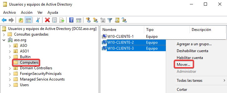 Para que esta configuración funcione, tendremos que mover los equipos a la Unidad Organizativa ASO1.