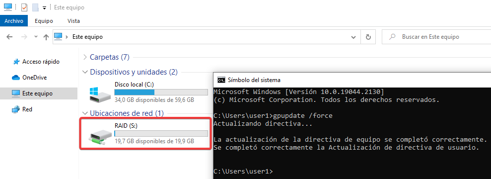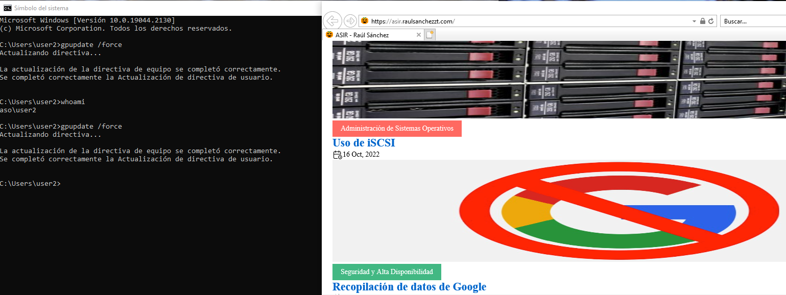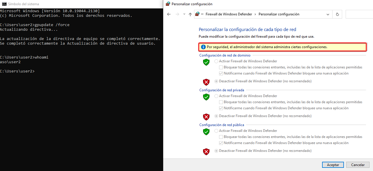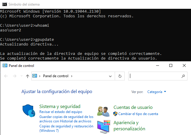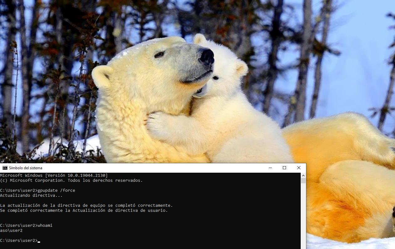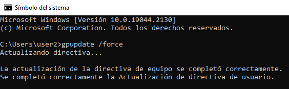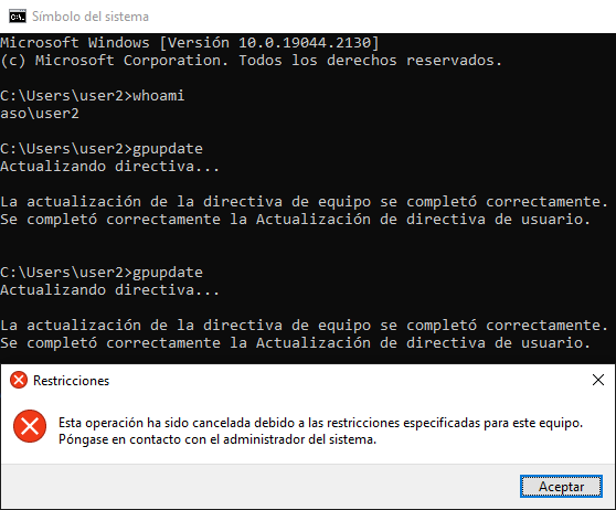 Desde el user2, actualizaremos las GPOs y veremos que ahora sí que podemos acceder.