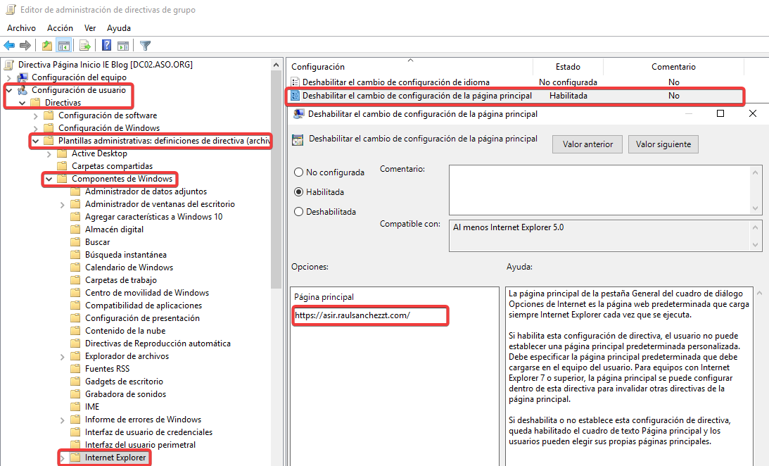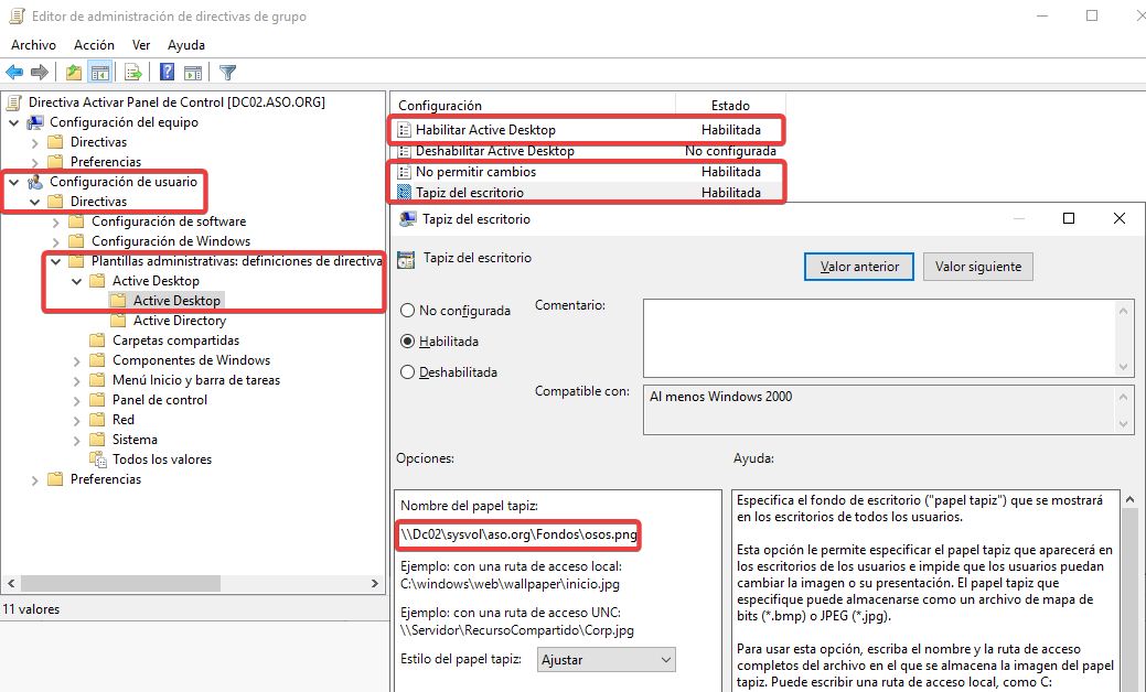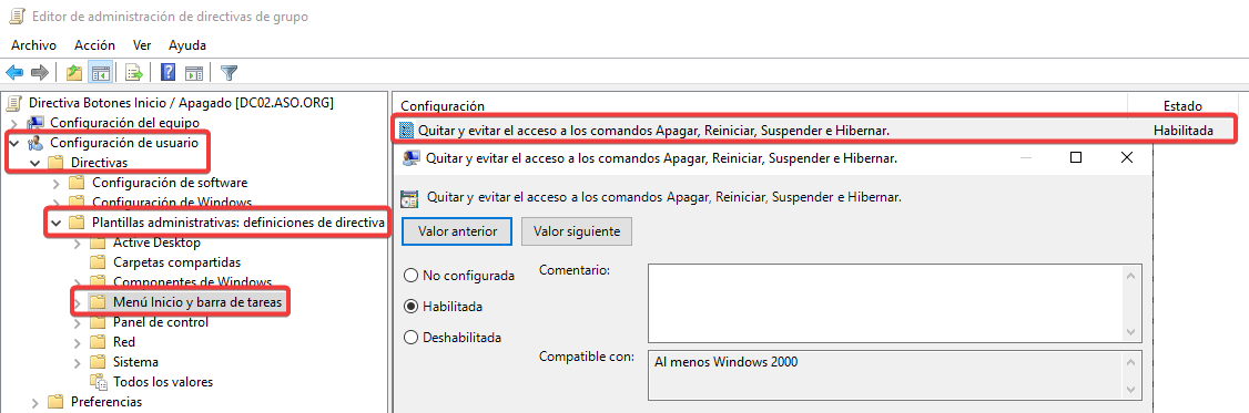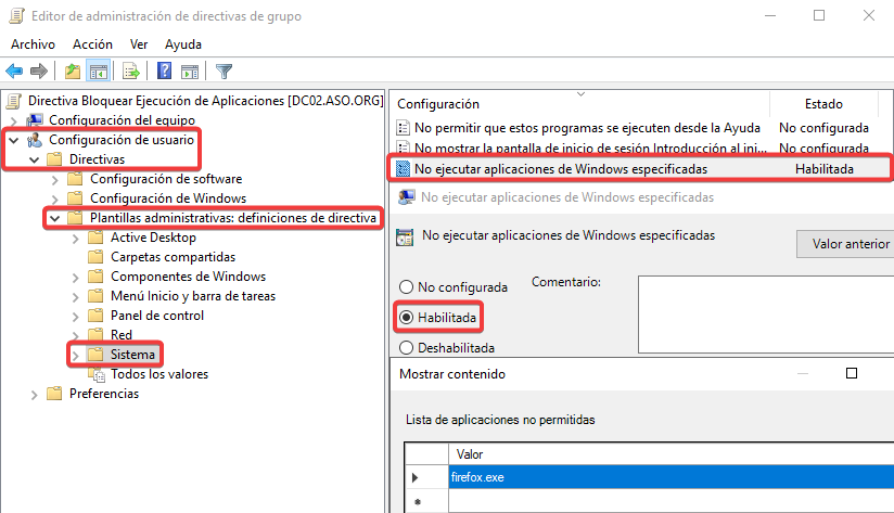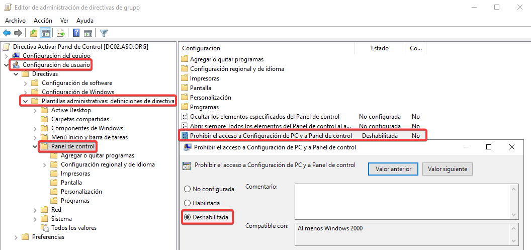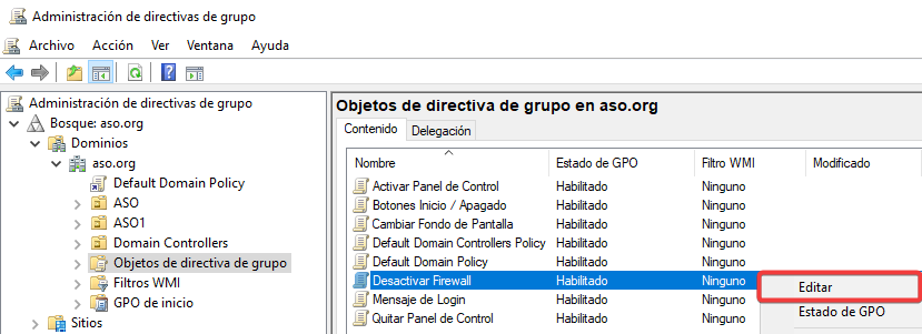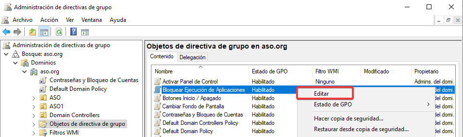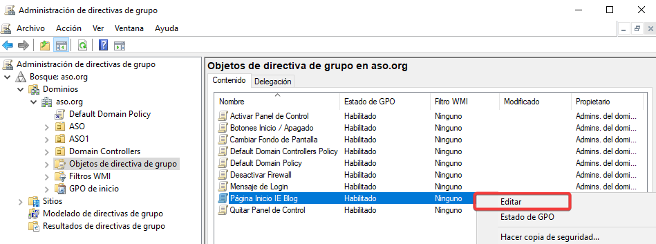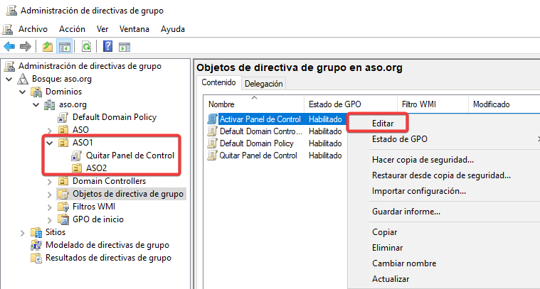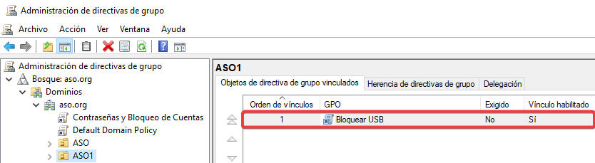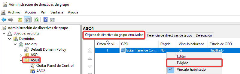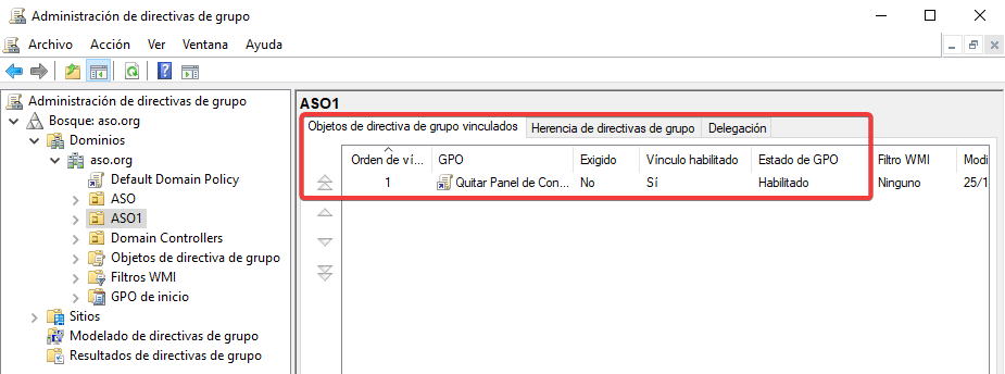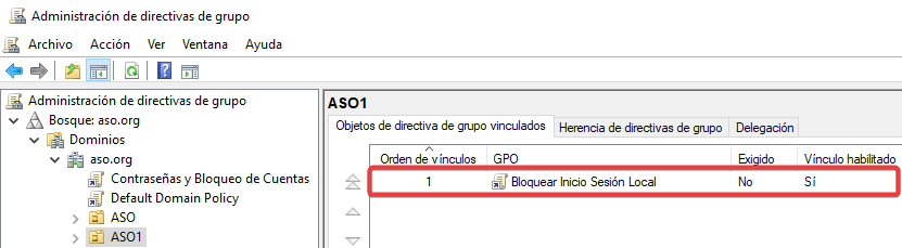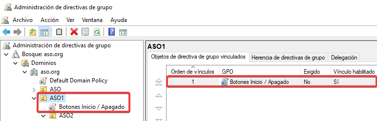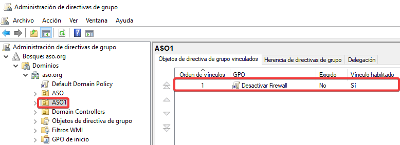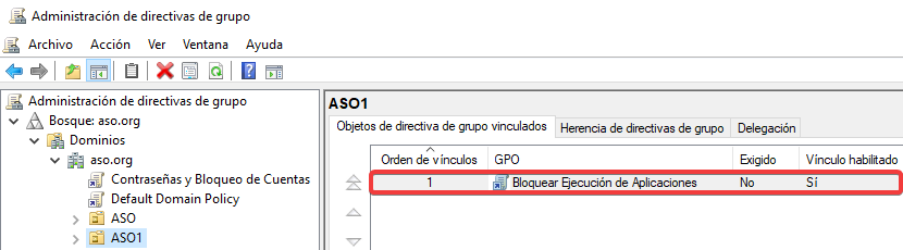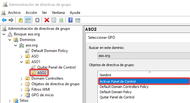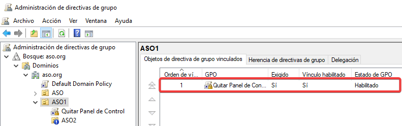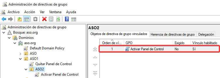Vinculamos esta nueva GPO con una configuración contraria a ASO2.