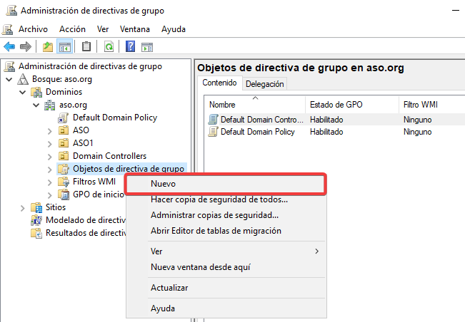 De nuevo, crearemos una nueva GPO…