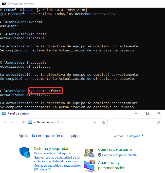 Después, vamos a forzar la aplicación de la GPO para que funcione obligatoriamente.