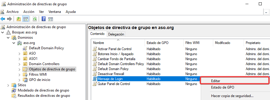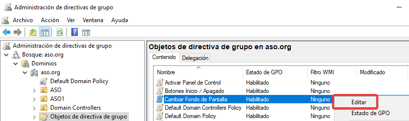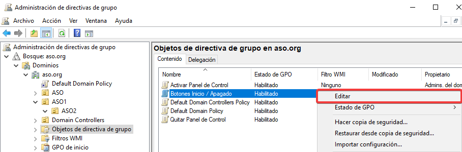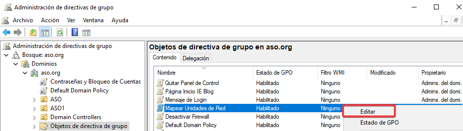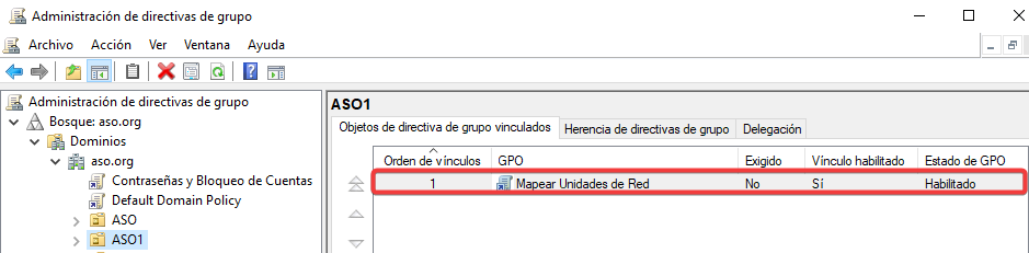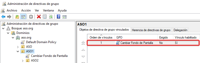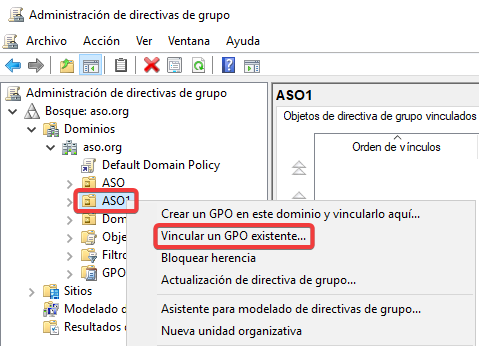 Vinculamos esta GPO a la Unidad Organizativa ASO1.