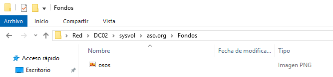 Para que los equipos puedan tener la misma imagen de fondo, crearemos una nueva carpeta en SYSVOL.