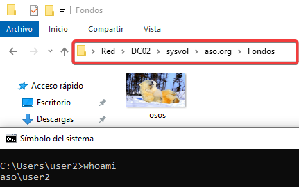 Ahora intentaremos acceder en el equipo con el user2.