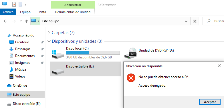 Si intentamos entrar desde el explorador de archivos no podremos.