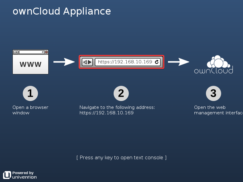 Se reiniciará el servidor, y aparecerá esta ventana donde se indica que nos tenemos que conectar mediante la página web.