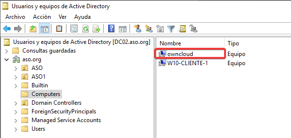 En el servidor, veremos que se ha añadido el equipo en el contenedor Computers.