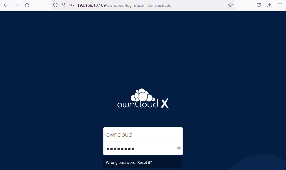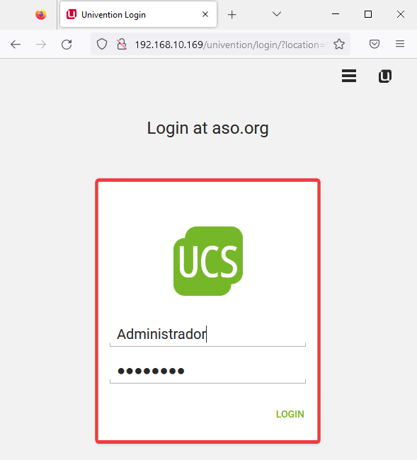 Por último, accederemos y veremos el login con el usuario Administrador.