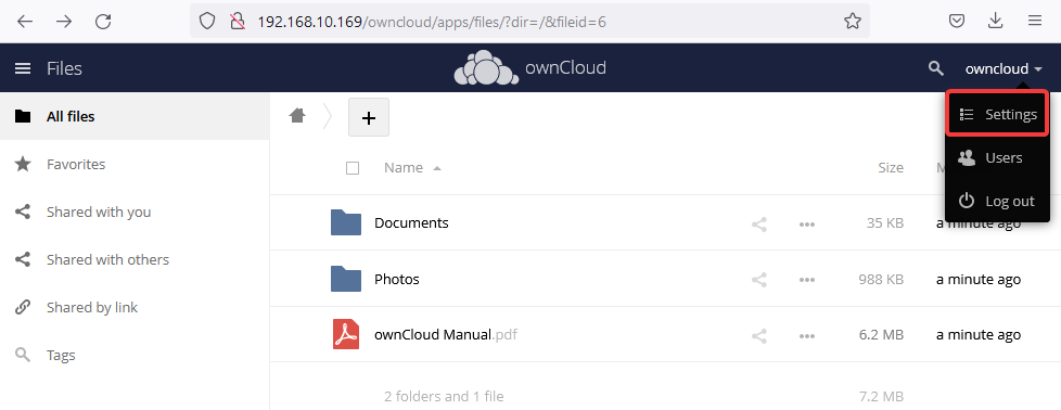 Lo primero que veremos será los archivos y carpetas que hay en la nube, entraremos en los ajustes.