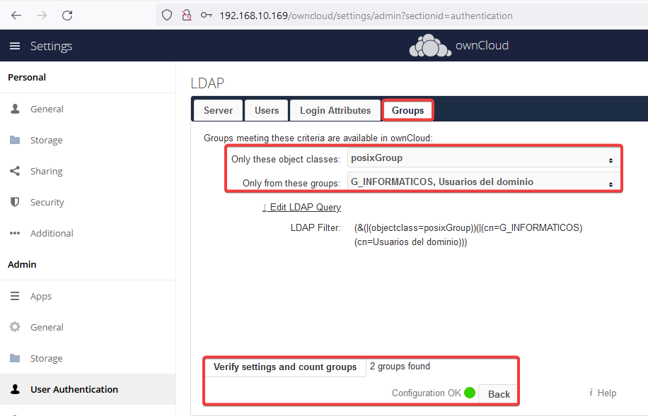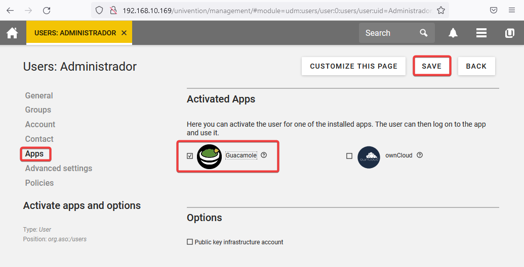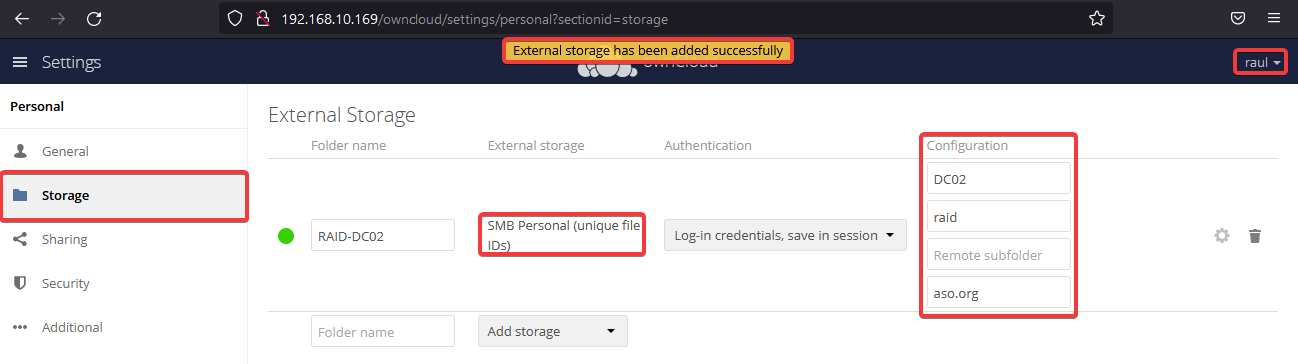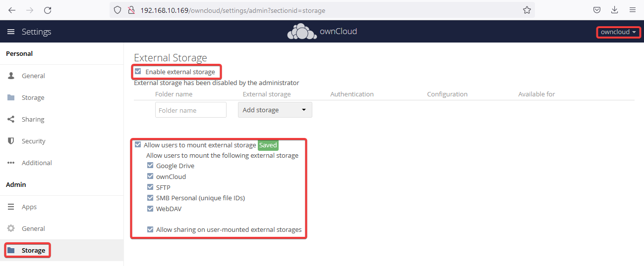 Ahora, habilitaremos el almacenamiento externo desde el usuario owncloud
