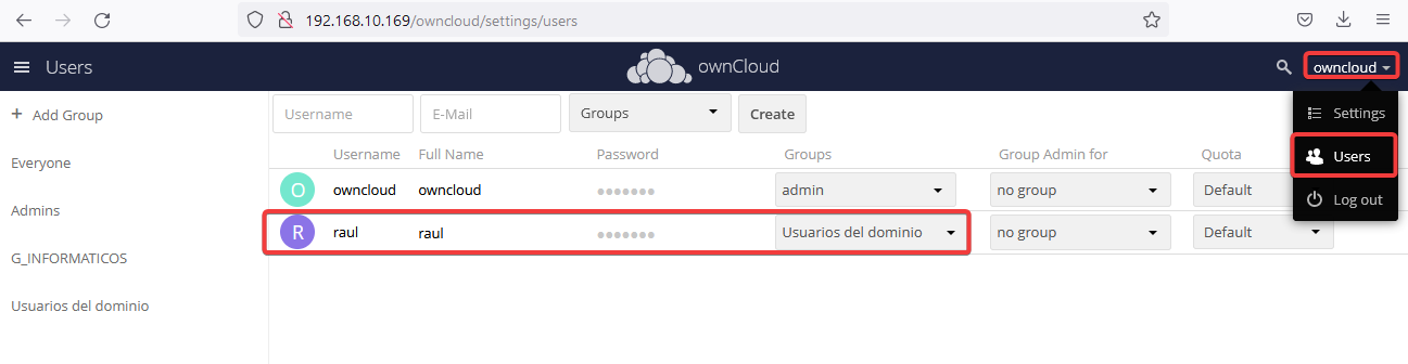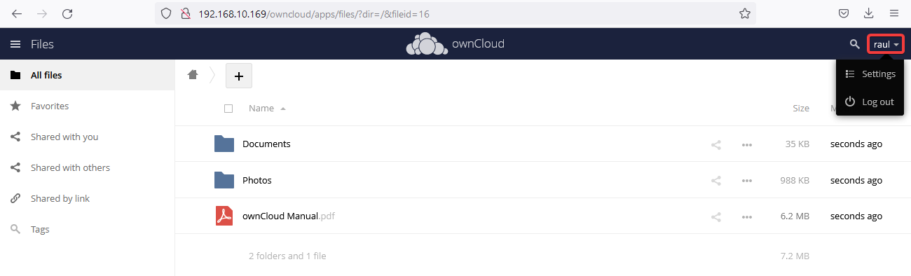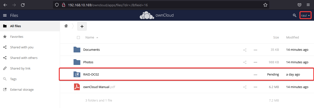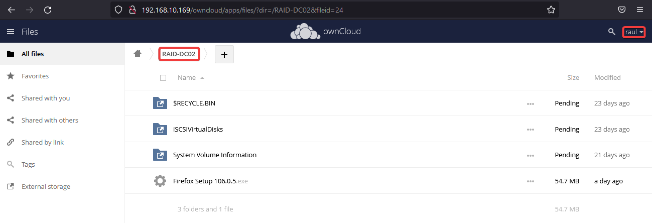 Observamos que ahora aparece en nuestro espacio de trabajo con el usuario raul