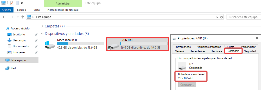Si entramos veremos los archivos compartidos que hay en la carpeta del servidor DC02.