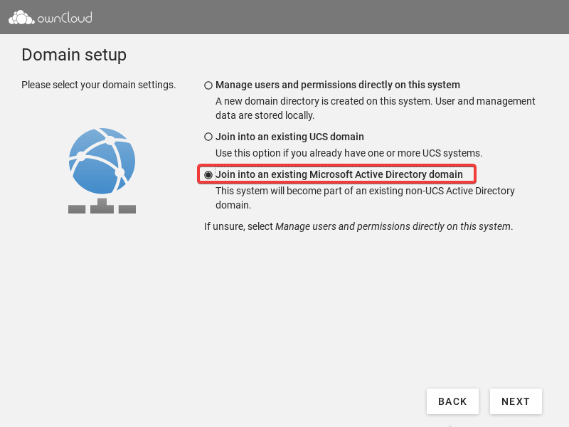 Luego, indicaremos que nos queremos unir a un dominio de Active Directory ya existente.