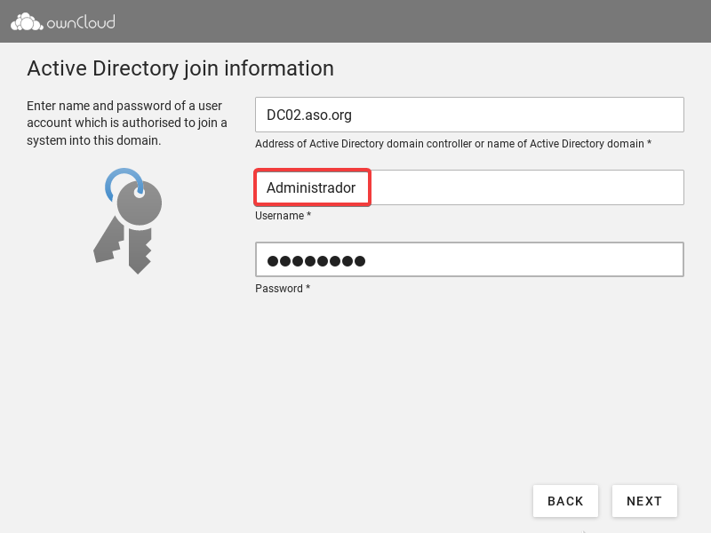 Configuramos el servidor al que nos queremos unir, el usuario Administrador y su contraseña.