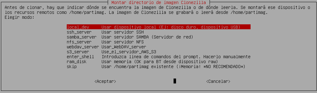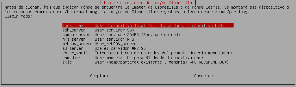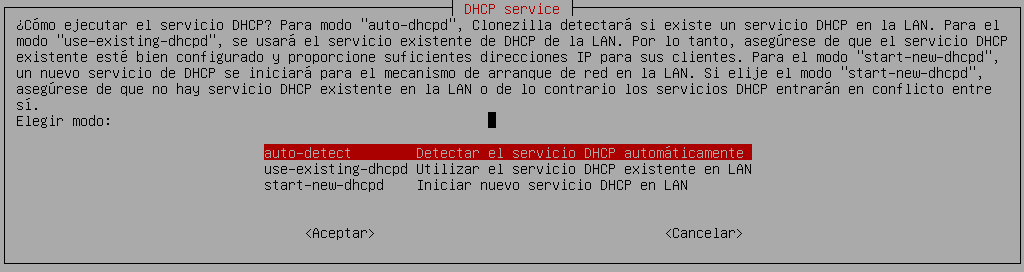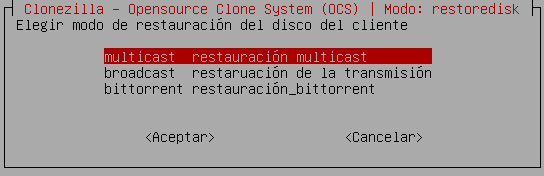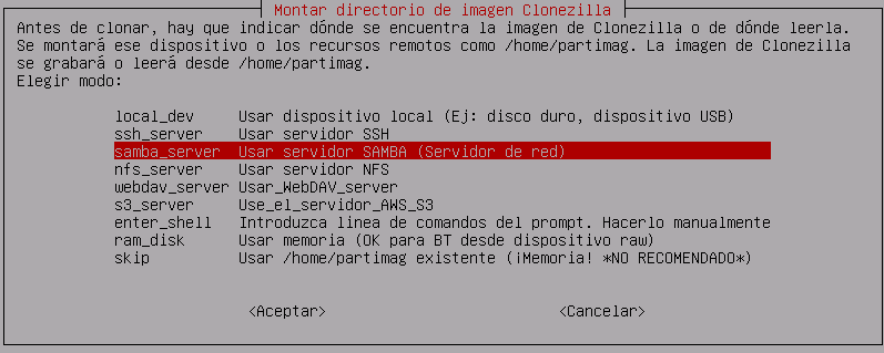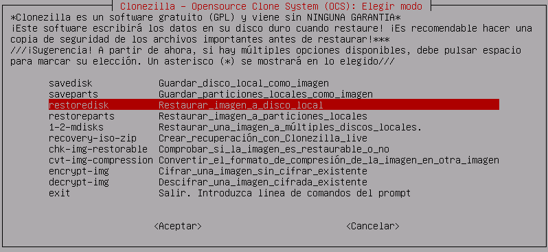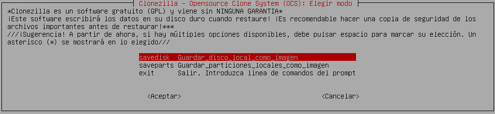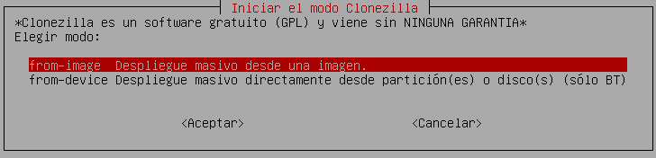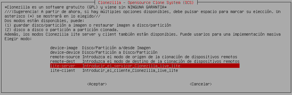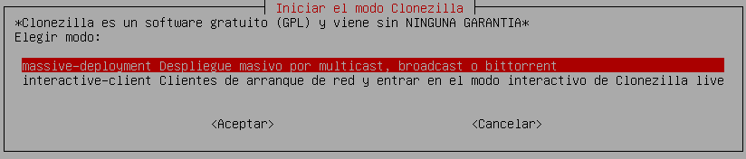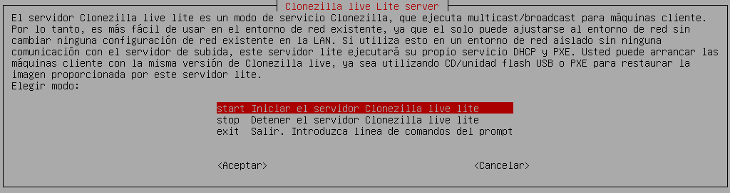En el mismo equipo que hemos creado la imagen, iniciaremos un servidor Clonezilla.