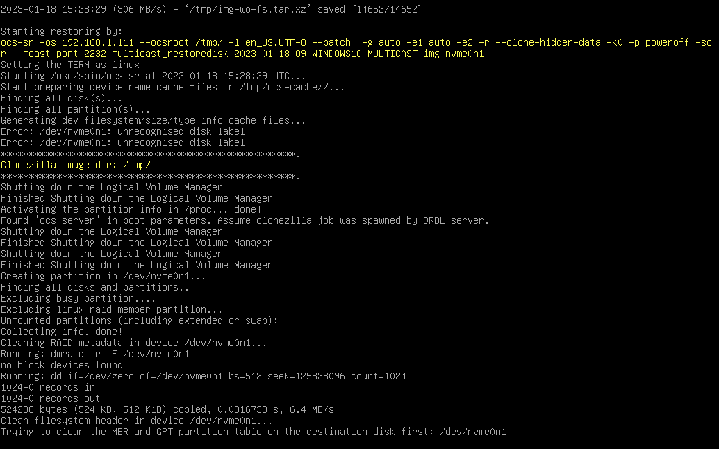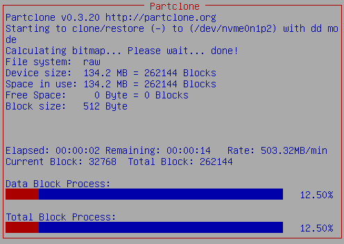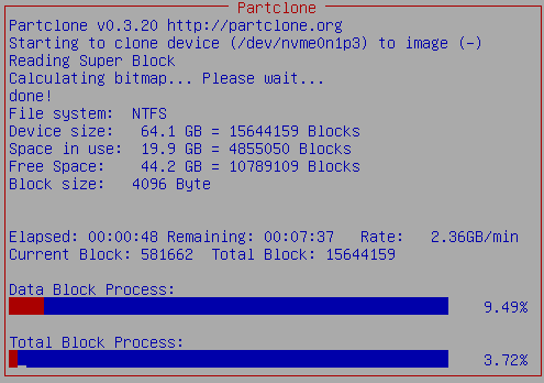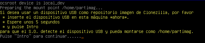 Observamos que se ha detectado el disco y se va a clonar la imagen.