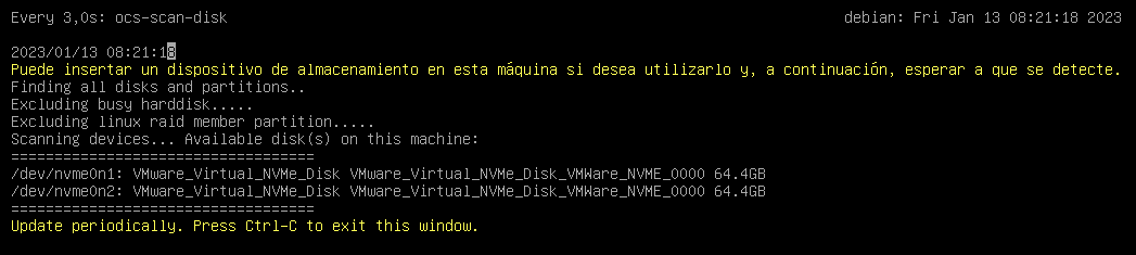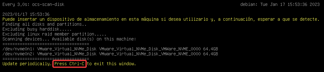 Esperaremos a que detecte todos los discos y después presionamos CTRL + C para salir.