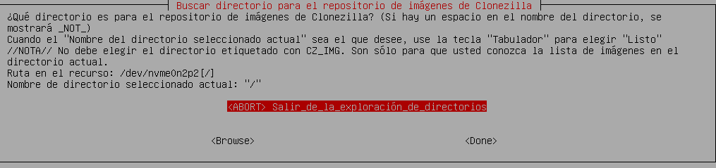 Abortamos, ya que no queremos indicar ningún directorio de destino.