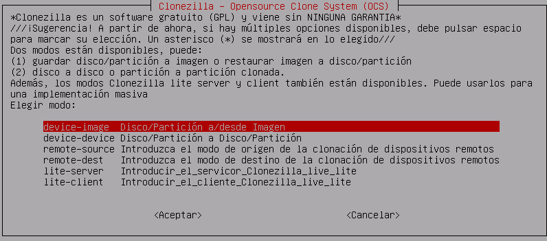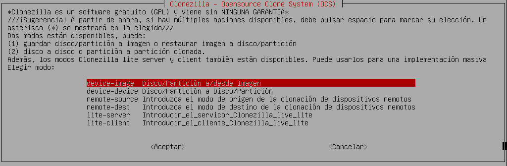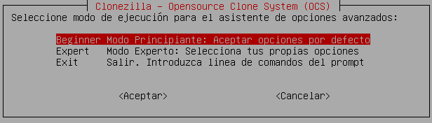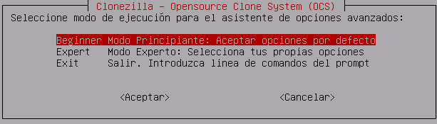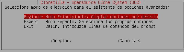 Ahora ejecutaremos Clonezilla en modo principiante.