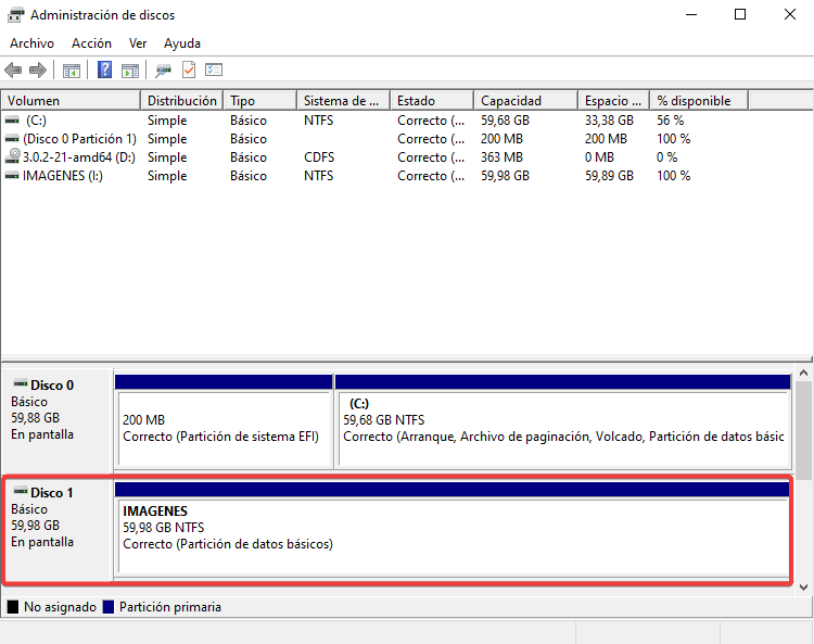 Luego, iniciaremos el disco duro que acabamos de añadir.