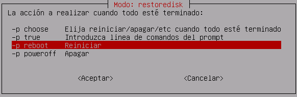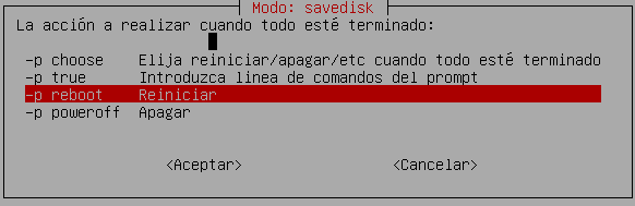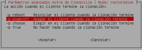 Por último, cuando terminemos de clonar, queremos que se apague el equipo.