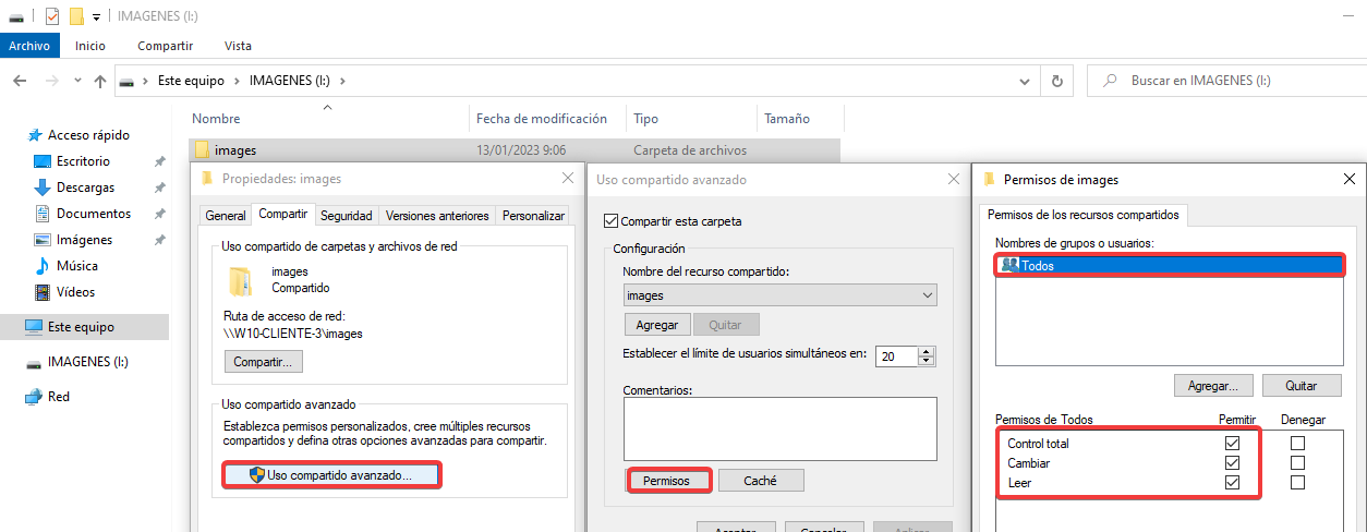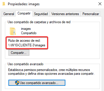 Ahora crearemos una carpeta llamada images y donde almacenaremos las imágenes. Esta carpeta la vamos a compartir en red.