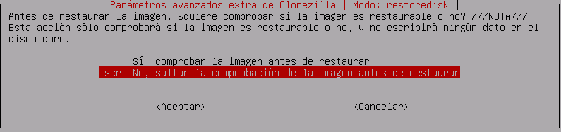 Saltaremos la comprobación de la imagen antes de restaurar.