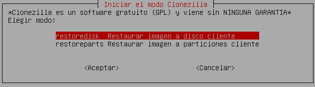 Indicaremos que queremos restaurar la imagen a disco cliente.