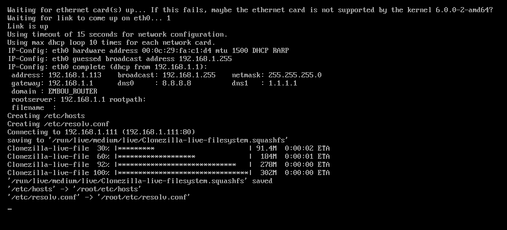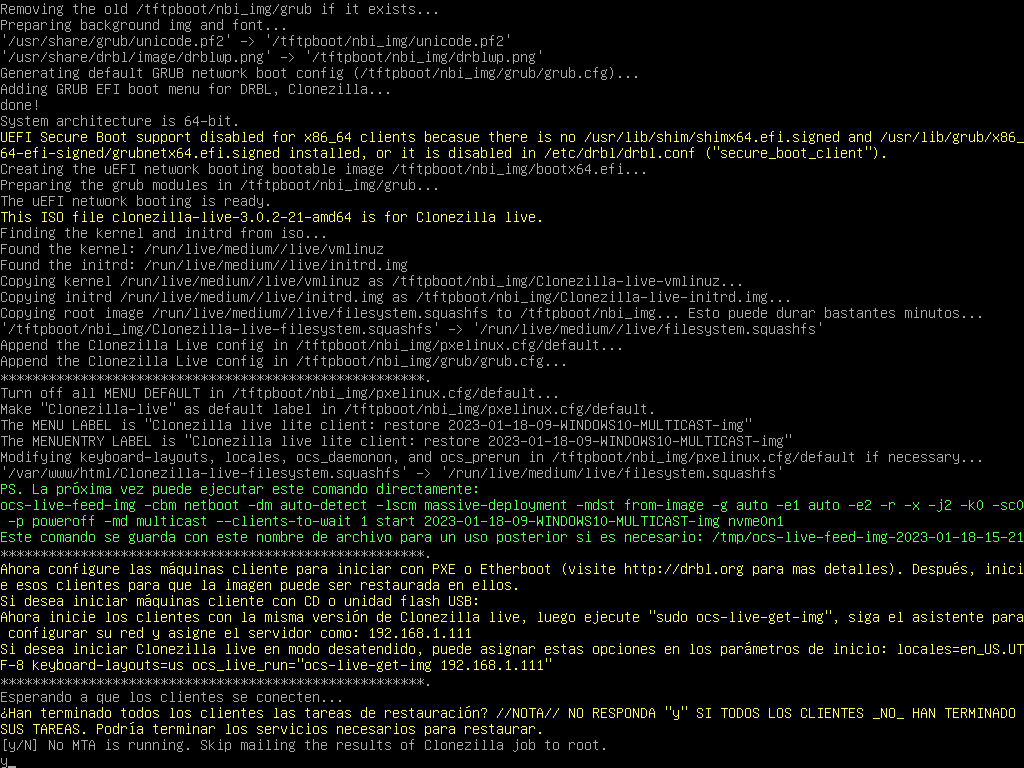 Aparecerá una ventana con el servidor iniciado, no apagaremos este equipo hasta que terminemos de clonar.