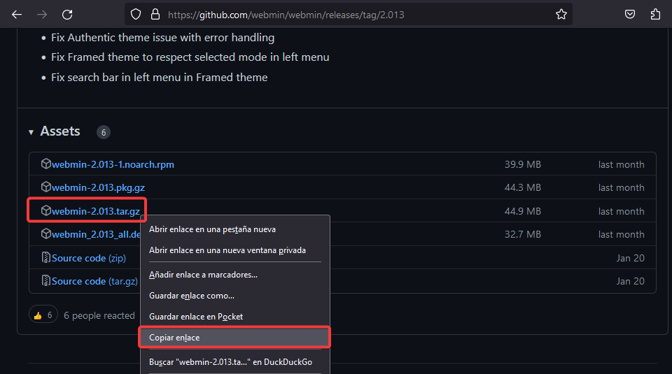 directamente de Internet, pero en este caso solo copiaremos el enlace de la descarga.