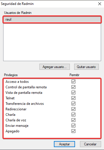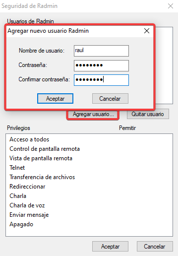 Añadiremos un nuevo usuario a Radmin.