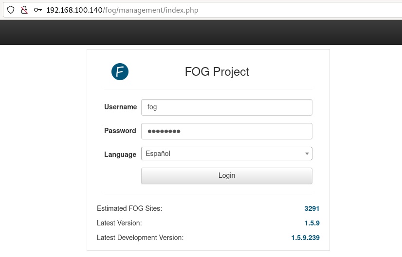 Introducimos las credenciales para continuar. En mi caso, son las predeterminadas: fog:password